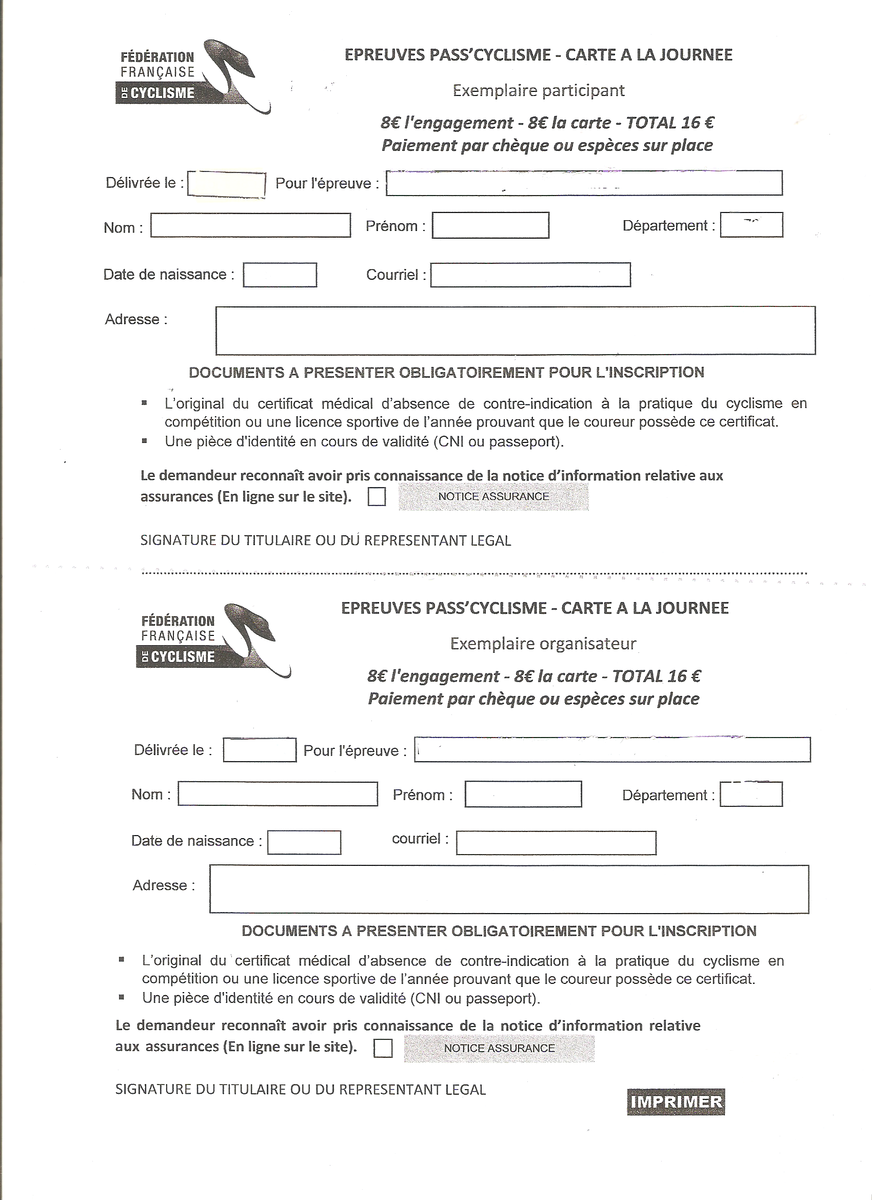 Formulaire à remplir pour une course Ufolep pour un coureur licencié en FFC