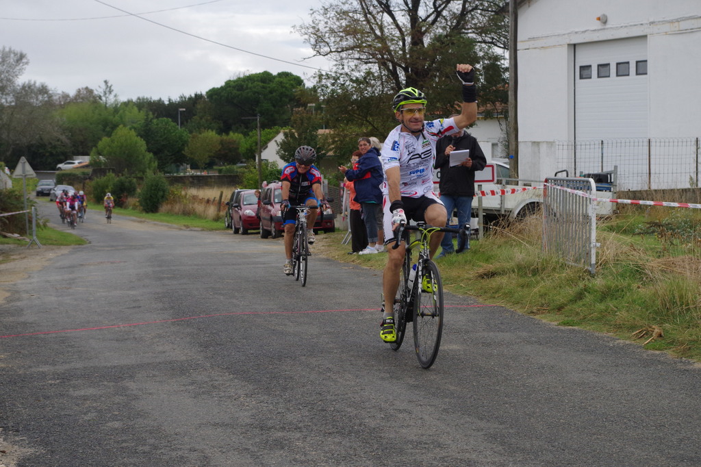 Déçu de l'annulation de la course de BESSINES et MAGNE de ce jour je suis allé me défouler en Charente Maritime. Je remporte la victoire au sprint à FOURAS devant Remy GUILLOU du nouveau club de Coulonges sur l'Autize.