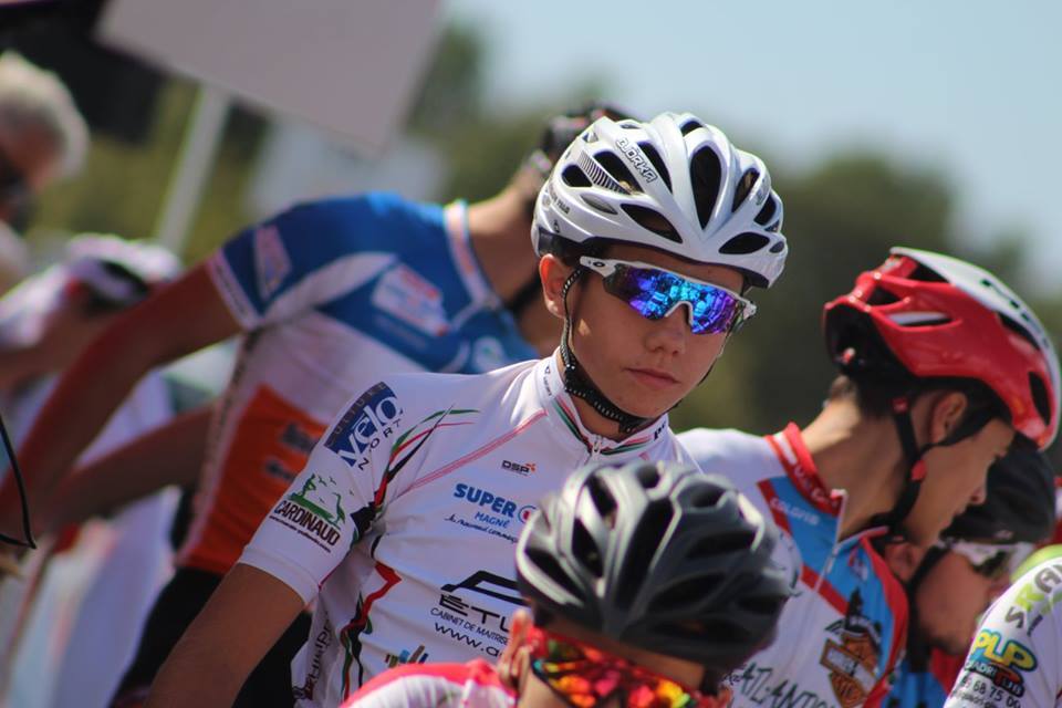 " Un peu moins de 100 coureurs au départ dont le champion de France et d'autres costauds. 80 kms au programme sur un circuit de 55 km en ligne et 3 tour de 8 km. J'ai tenté plusieurs fois de montrer le maillot sans que cela marche. Deux Coureurs partent dont le Champion de France, puis une dizaine un peu plus tard. Mathéo lâche prise sur une forte relance avant d'arriver sur le circuit. Arrivée au Sprint dans le peloton à une centaines de mettre du groupe de tête. 22 ème au final avec une belle moyenne de 42 km/h. Très beau circuit et belle course.