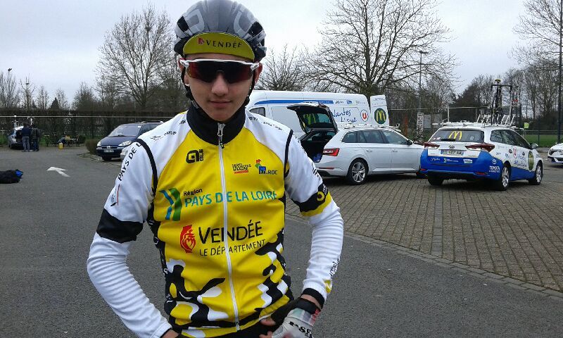 "Il a fait 15 kms en échappée avant d'être rejoint par le peloton puis 10 gars partent devant et Tom arrive pour le sprint de la 11ième place et termine dans le paquet autour de la 35 ième place."