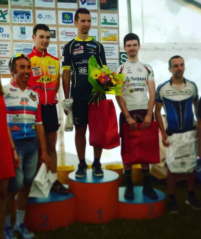 En 3 eme catégorie , nouveau podium pour Dylan qui termine 3° en remportant le sprint du peloton .... 5 podiums en 6 course il ne manque plus qu'une première victoire avant de monter en 2eme catégorie !! les autres coureurs PSF terminent dans le peloton