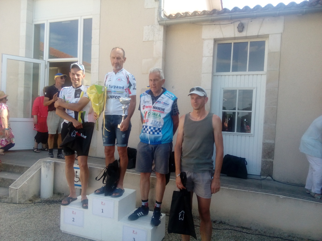 Victoire de Patrick Deniau à La Chapelle Bertrand , sous la canicule Patrick a pris le bon wagon de 10 coureurs à 1 tour et demi de l'arrivée et s'impose au terme des 56 Km.