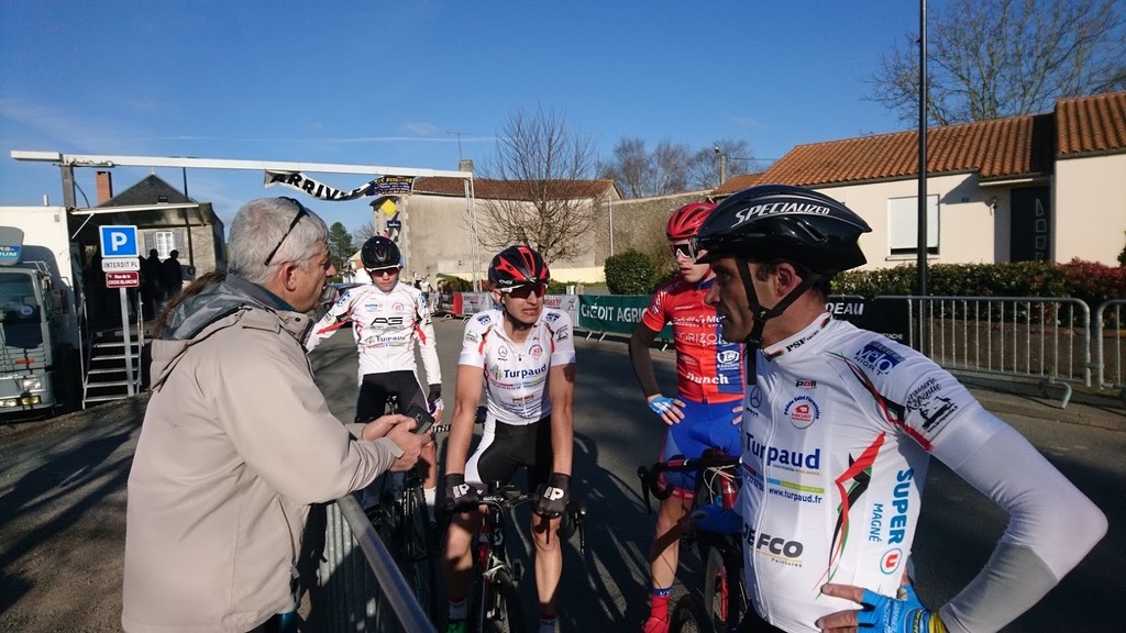 "Present avec Matheo et Sebastien. Le vent toujours présent, départ rapide et des bordures se forment, Seb se retrouve dans un 1er groupe et Matteo et Moi dans le peloton. Matheo sort ds un contre ils se retrouveront beaucoups à l'avant. Mon groupe est pointé à 1min30 on arrivera à rentrer à trois/quatres tours de l'arrivée. Avec Matheo on essaye d'accompagner les coups. Malheuresement un groupe de 10 part et se jouera la gagne. Dans le dernier tour je sors avec 3 autres pour aller prendre une 12eme place. Matheo 20eme et Sébastien 31eme. On aura montré le maillot.😁"