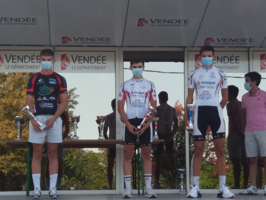 « Course de Chantonnay vallonné avec 1400 de d+ sur 120km. Première heure plutôt tranquille où je reste placé à l'avant, ce n'est que quand l'échappée est repris au km 68 que la course commence, avec Matheo et Rémi nous essayons de sortir, finalement Matheo arrive à sortir, le peloton s'étire dans les bosses les plus dur je rentre avec une dizaine de coureurs, nous sommes 5 pour jouer la 5ème place avec quelques mètres d'avance mais le groupe revient, je termine 16ème épuisé mais content de ma course »