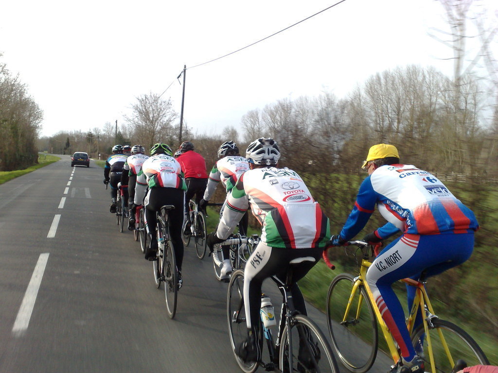 Sortie d'entraînement ordinaire donc d'un club avec toutes ses catégories démarrée en échauffement par la reconnaissance du parcours de Bessines servant de support au championnat départemental minime cadet où nous les avons fait grimper 2 fois la côte de Ste Macrine et sûrement qu'ils savent maintenant à quoi s'attendre !