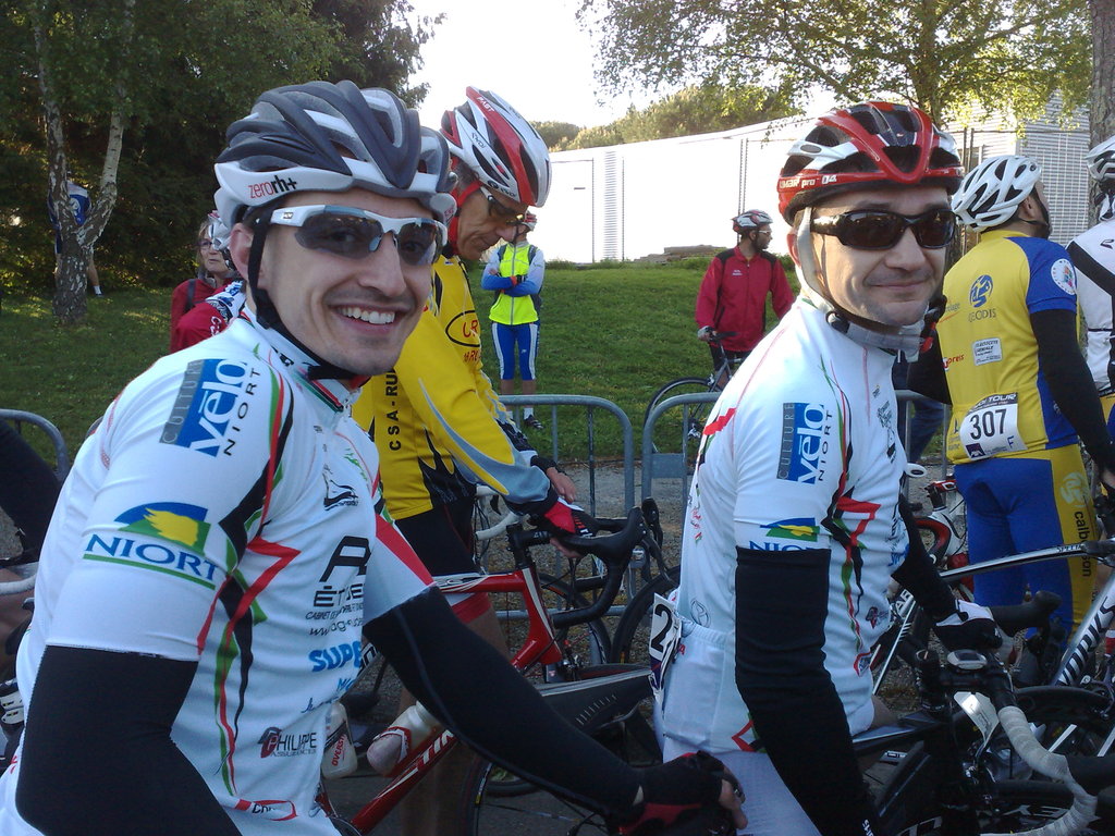 Pour cette belle course, tout c'est bien passé pour moi. Au départ on a reussi avec mon frère à être dans les 100 premiers et vu que le début de course n'est pas parti à un rythme fou, j'ai pu remonter facilement aux avant postes dans les 50 premiers. A la première difficulté, ou à ce moment bruno mon "coach" de course d'un jour était à coté de moi ma dit ca va se jouer un peu ici alors je suis remonté, mais à ce même moment une attaque de 6 coureurs se fait, j'hésite à les rejoindre mais après quelques mètres à enmener le peloton j'ai vu que ce n'était pas la peine, et j'ai attendu un peu et 4 coureurs sont partis en chasse patate. Je me suis dit c'est la bonne ils vont se retrouver à 10 donc je suis sorti du peleton tout seul et au bout de deux bons kilomètres acharnés à rouler à 55 km/h et j'ai fini par le rjoindre et trois autres coureurs nous ont rejoins dont les deux frères herbreteau. Après cela on a roulé pour rattrapper l'échappée à une bonne allure, et arrivé à 10km avant le premier ravitaillement au 70e km on a retrouvé l'échappée et creusé petit à petit le temps au peloton qui est monté à 7 min.