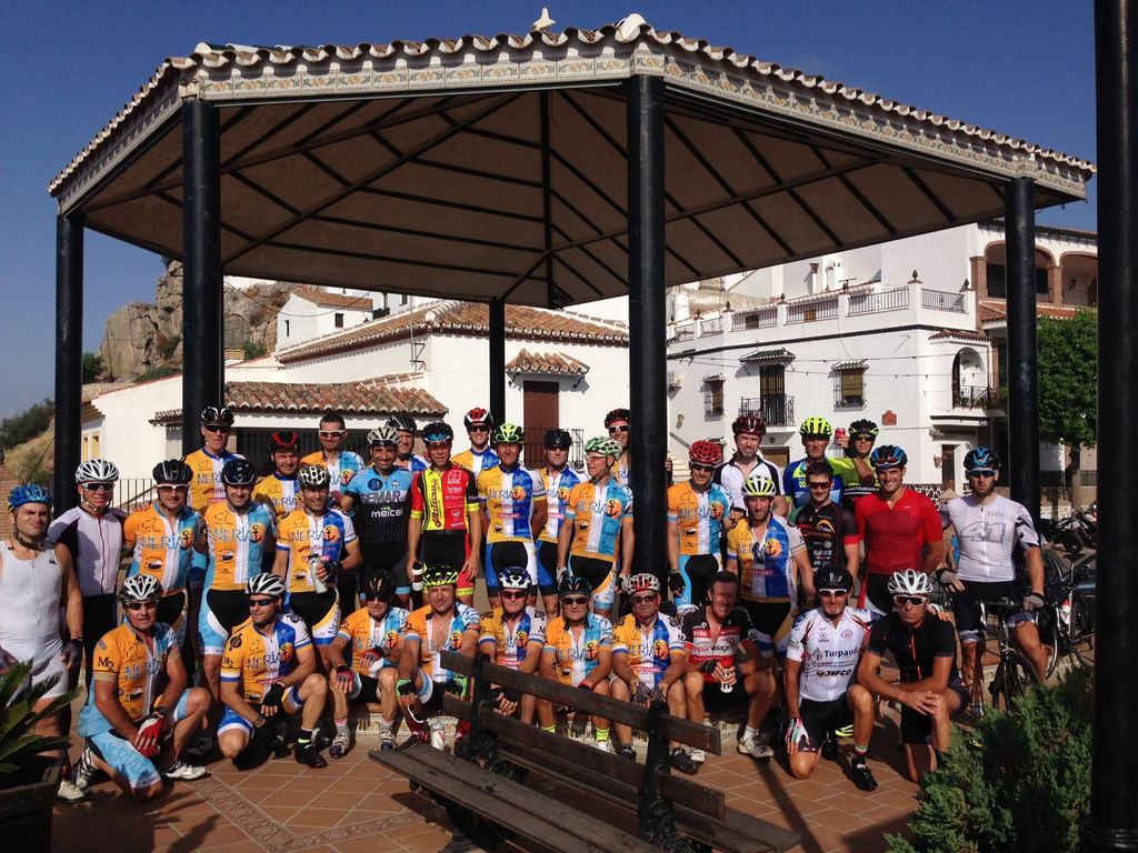 "le maillot de la PSF est présent en Andalousie pour mes vacances, les sorties avec mes copains Espagnols sont intenses et très montagneuses, mais je défends nos couleurs lors des sprints pancartes avant les tapas et la biére...