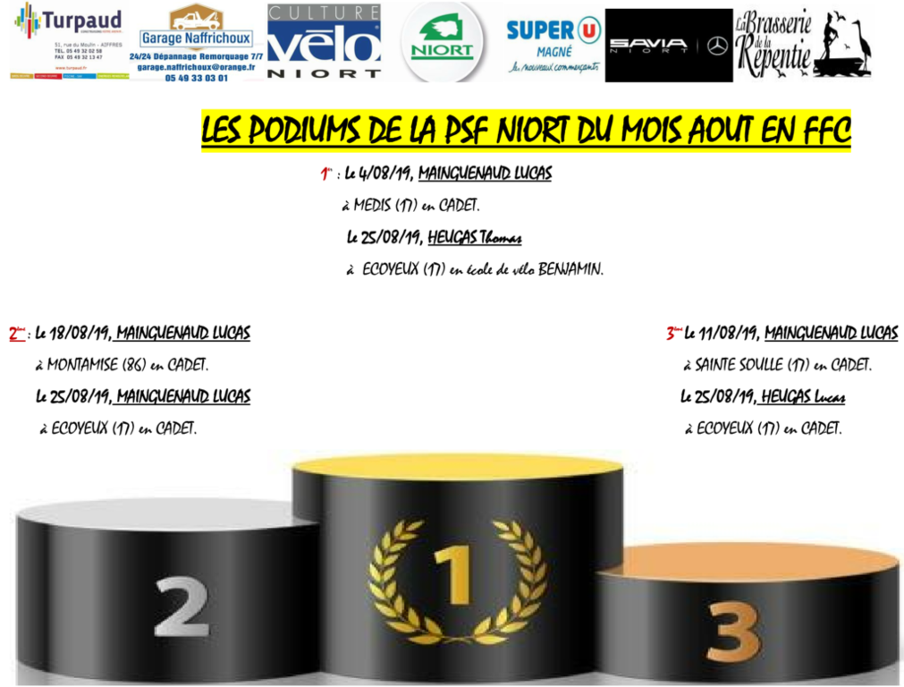 Les podiums du mois d'AOÛT de la PSF NIORT.
