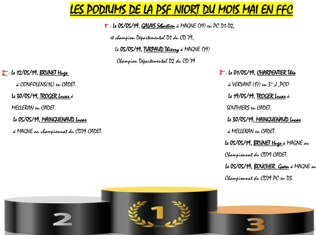 Les podiums du mois de MAI de la PSF NIORT.