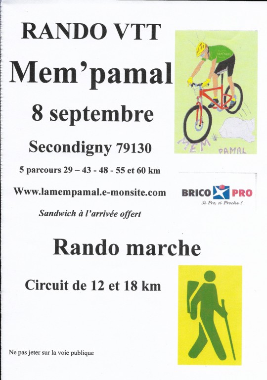 Le club de la PSF NIORT partage une randonné VTT le 8 septembre 2019 organisé par un de nos partenaires publicitaires de la course de SECONDIGNY le 6 octobre 2019.