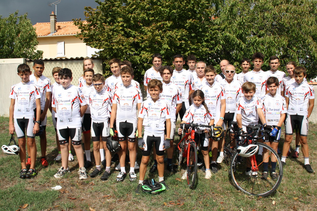 Profitons du soleil, pour une photo de l'école de vélo avec les jeunes de l'école de vélo avec les minimes, cadets et juniors, les encadrants et les parents accompagnateurs.